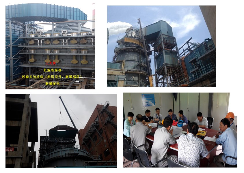 5、6號(hào)機(jī)組脫硫提效改造項(xiàng)目;包括新增低溫省煤器、原吸收塔增高、新建副漿液箱、新增濕式電除塵現(xiàn)場(chǎng)所必需的所有的建筑、安裝工作,以及新增設(shè)備的附屬系統(tǒng)安裝、設(shè)備基礎(chǔ)制作、與新設(shè)備沖突的舊設(shè)備、煙道等拆除、清理、恢復(fù),設(shè)備安裝完畢后實(shí)驗(yàn)檢驗(yàn)、單體調(diào)試,配合試運(yùn)直至168結(jié)束。